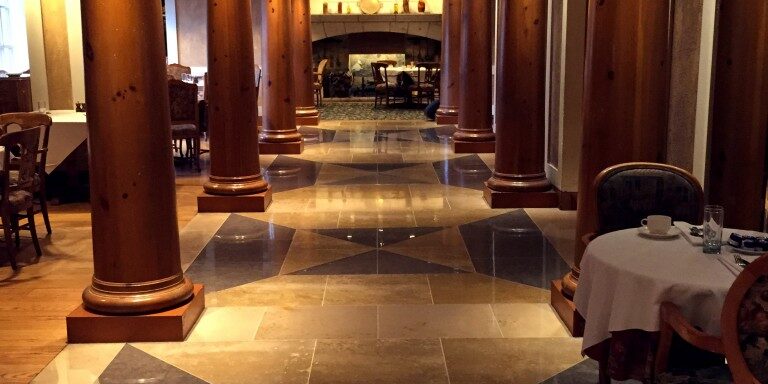 The travertine floor in this upscale restaurant is maintained by GK’s Custom Polishing, Inc.